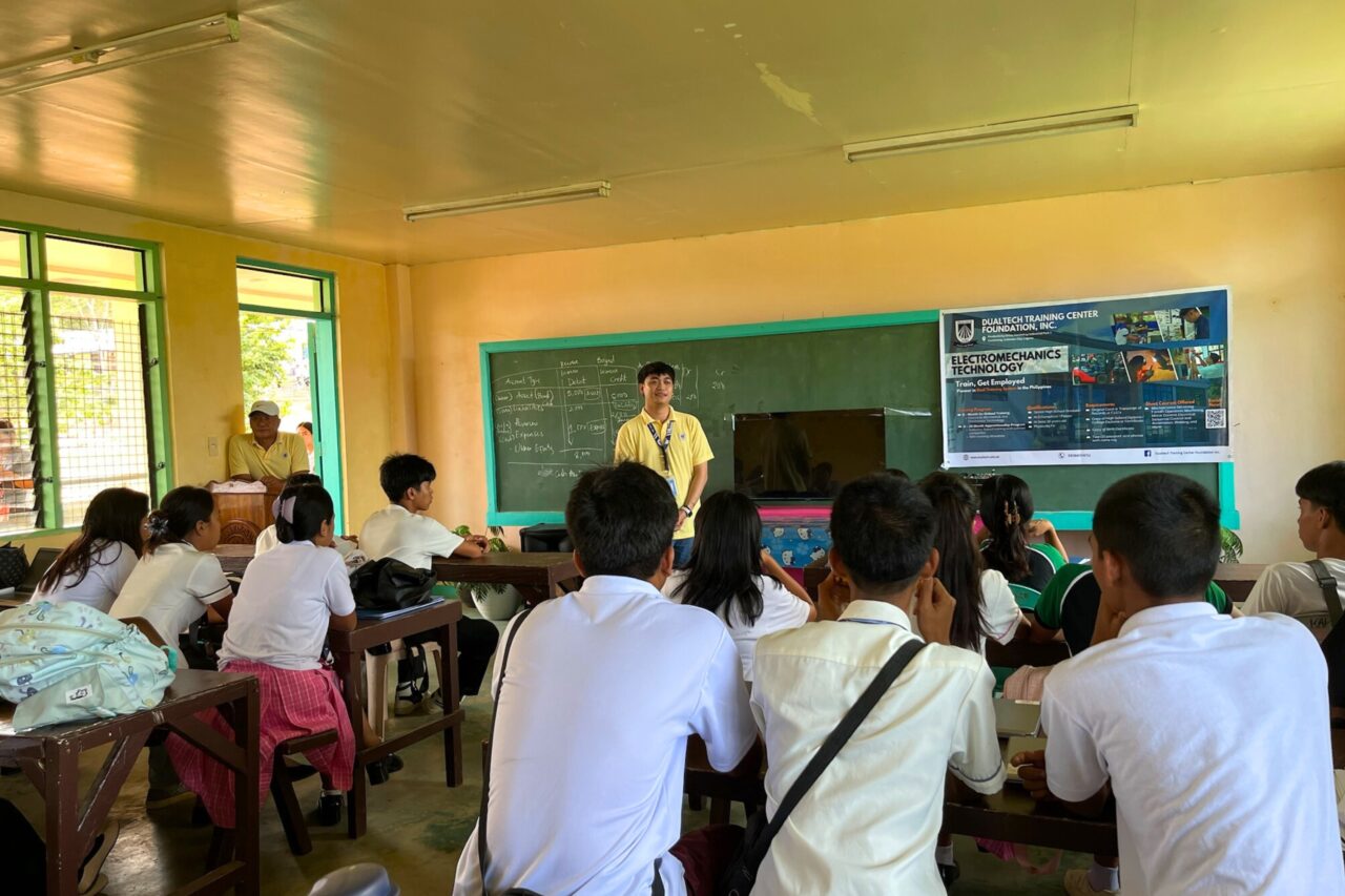 Dualtech Training Center visited schools in Taytay, Palawan to introduce career opportunities for the youth. Most families in Taytay rely on farming, construction, and fishing for their livelihood.